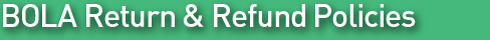 | If customers find that they no longer require goods that have been ordered they can telephone (01179 243569) or email (info@bola.co.uk) BOLA Manufacturing Ltd and if the order has not been dispatched they can received an immediate credit to their payment card. If the order has already been processed the goods can be returned for a refund and BOLA Manufacturing Ltd shall pay for the original delivery. The customer may be asked to pay the carriage costs of the return. Requests to cancel orders should be made within seven working days of the day the goods were delivered. Customers have a statutory duty to take reasonable care of goods throughout the cancellation period. | ![]() |